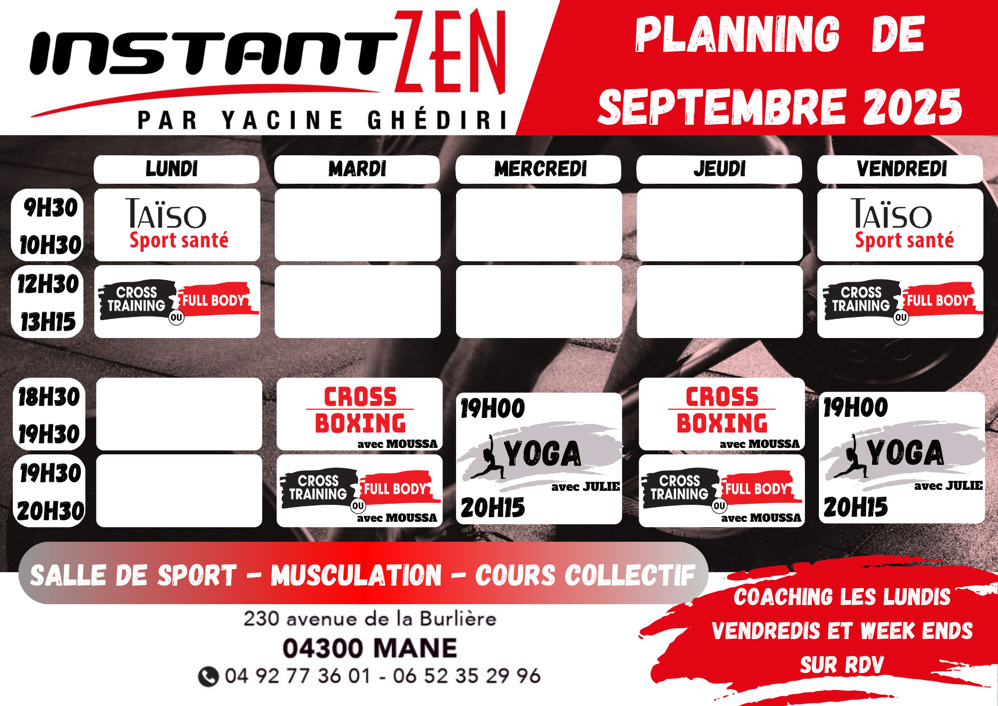 Chez Instant Zen, bouger, c’est plus qu’un effort physique — c’est un moment pour soi, un souffle d’équilibre et de vitalité. Que vous cherchiez à vous défouler, à vous recentrer, à gagner en force ou à danser avec le sourire, nos disciplines s’adaptent à votre rythme et à vos objectifs.